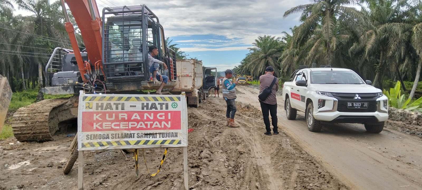 Tidak hanya itu, sejumlah truk mengalami tumbang akibat kondisi jalan yang rusak selama pengerjaan berlangsung.