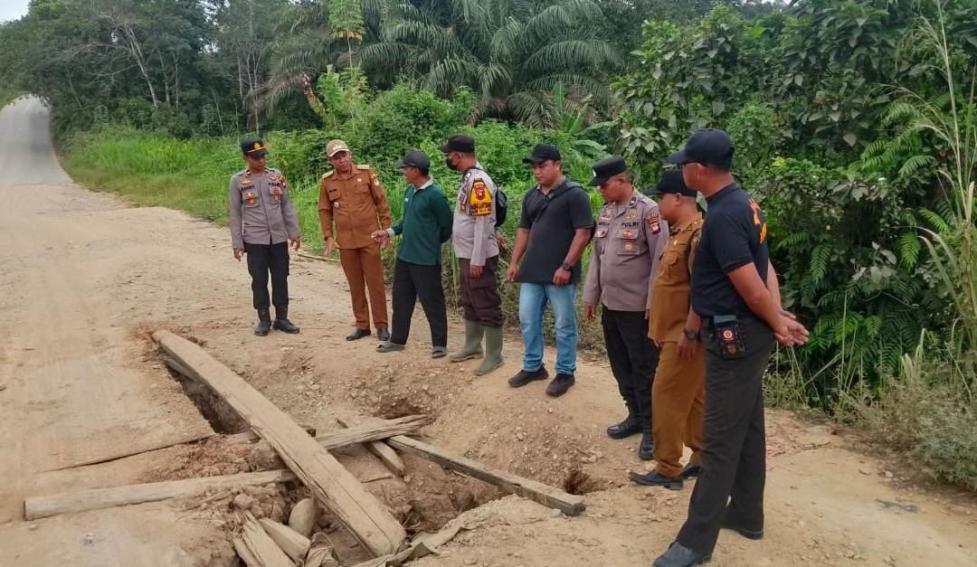 Camat Ella Hilir bersama jajaran Polsek dan Koramil turun langsung meninjau proses perbaikan pada Minggu, 30 Maret 2026. Mereka memastikan pekerjaan berjalan sesuai rencana sekaligus memantau kondisi di lapangan yang masih rawan bagi pengguna jalan.