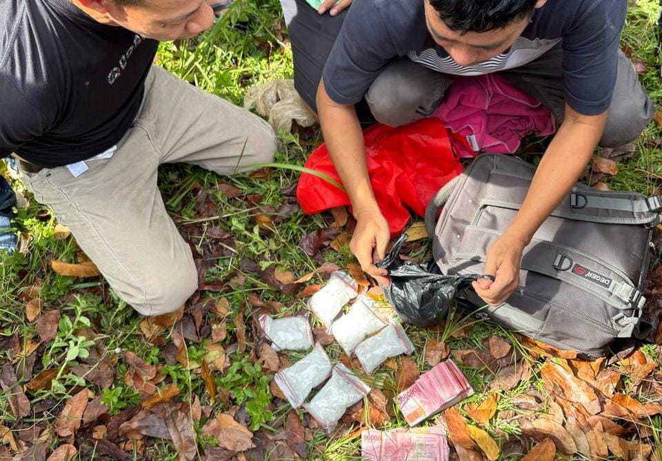 Polisi kemudian memanggil saksi warga untuk menyaksikan penggeledahan. Dari dalam mobil, petugas menemukan barang bukti berupa enam kantong plastik klip ukuran besar berisi serbuk kristal yang diduga sabu seberat 612,37 gram bruto, satu buah timbangan digital, satu tas ransel warna cokelat, serta satu unit ponsel Oppo Reno 4 warna silver.