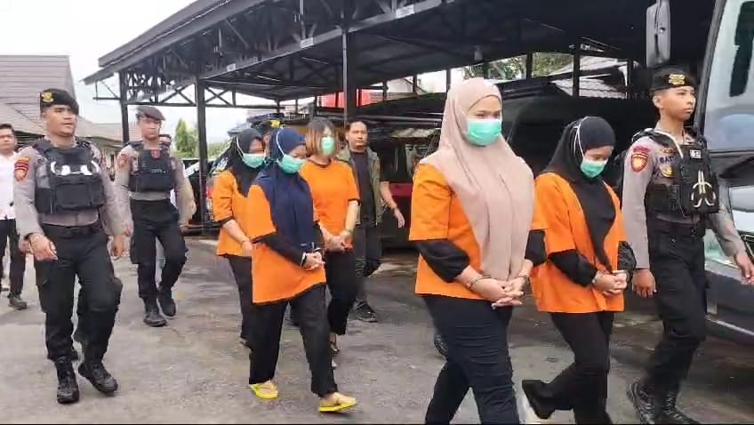 Sebanyak tujuh tersangka yang seluruhnya perempuan diamankan dalam kasus ini. Mereka berinisial NW, SS, WA, AS, IE, AN, dan SP. Polisi juga menghadirkan sejumlah barang bukti yang berkaitan dengan kasus tersebut.