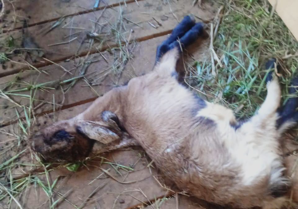 Bangkai Kambing program ketahanan pangan milik Pemerintah Desa Istana, Kecamatan Sandai, Kabupaten Ketapang, ditemukan mati di Kandang, Rabu (31/01/2024). (Foto/ruai.tv)