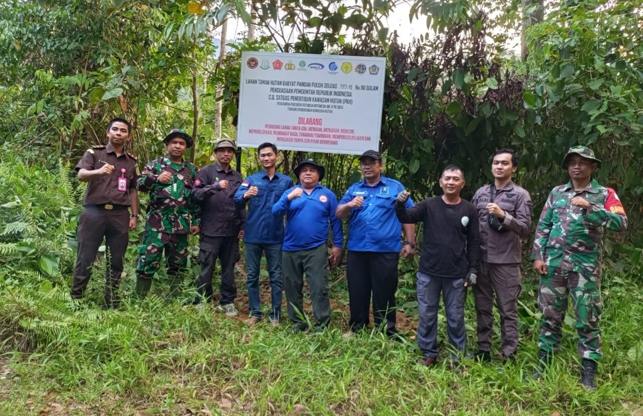 BENGKAYANG, RUAI.TV – Satuan Tugas Penertiban Kawasan Hutan (Satgas PKH) dari Kabupaten Bengkayang dan Landak memasang plang larangan masuk di kawasan Taman Hutan Rakyat (Tahura) Pandan Puloh seluas 383,41 hektar di Desa Tirta Kencana, Kecamatan Bengkayang, Kamis (24/7/2025).