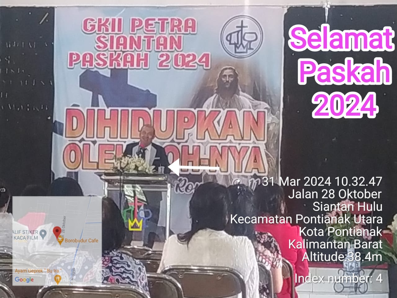 Di Gereja Kemah Injil Indonesia (GKII) Petra Siantan, Pontianak Utara, Kalimantan Barat, merayakan paskah dengan tema “Dihidupkan Oleh Roh-Nya” yang terambil di dalam kitab Roma Pasal 8 ayat 1-17.