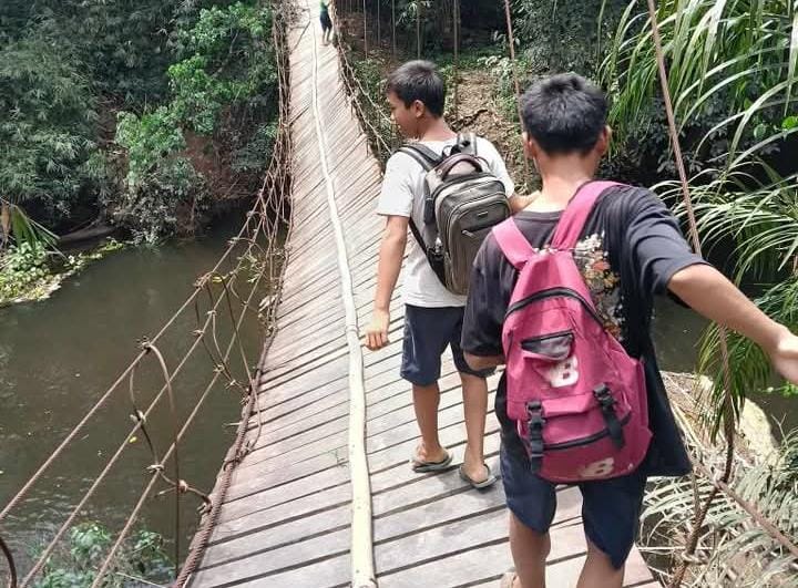 Pelajar nekat melewati jembatan miring demi menuntut ilmu. Warga terus berharap perhatian dari pemerintah sebelum terjadi korban jiwa akibat kondisi jembatan yang makin membahayakan.