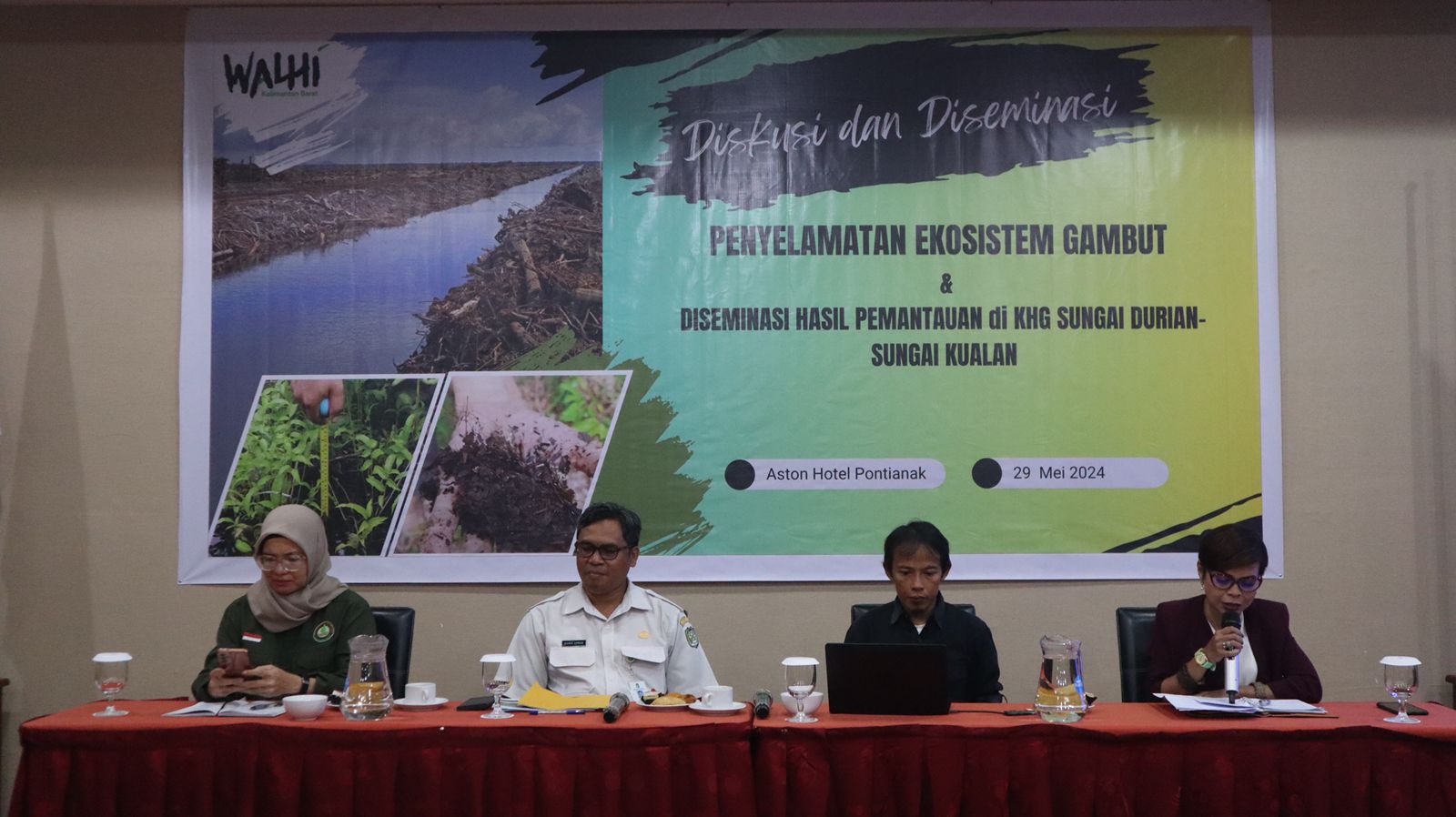 Selain Direktur Walhi Kalimantan Barat, Hendrikus Adam, juga turut menjadi narasumber Khairil Anwar dari Dinas LHK Kalbar dan Rosi Widia NA, Sekretaris TRGD Kalbar.