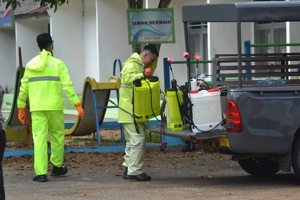 SEKADAU – Penyemprotan disinfektan atau cairan pembasmi virus corona (Covid 19) juga dilakukan tim ...