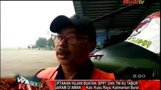 Badan pengkajian dan peneraran teknologi bersama TNI angkatan udara, menaburkan garam ke awan, dengan ...