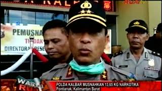 Kepolisian daerah kalimantan barat, jumat pagi memusnahkan 13,65 kilogram narkotika, terdiri dari 8,23 kilogram ...