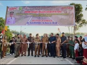 SAMBAS, RUAI.TV – Bupati Sambas, Satono, meresmikan jalan poros Kota Bangun – Sekuyang dengan ...