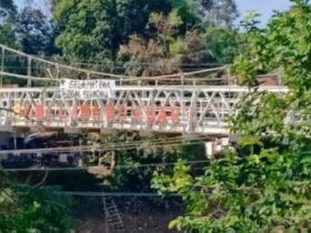 SEKADAU, RUAI.TV – Sebuah spanduk tampak terpasang di Jembatan Gantung Penajung, di Desa Mungguk, ...