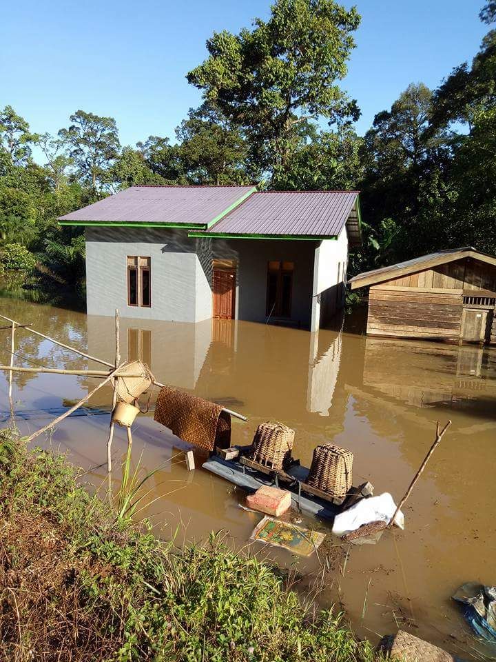 Akibat diguyur hujan Senin (16/4) dini hari di wilayah Kecamatan Meliau, Kabupaten Sanggau, debit air di sungai Boyan meluap Sehingga mengakibatkan Rumah warga tergenang Banjir.