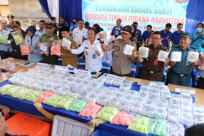 “Sangat bersyukur narkotika-narkotika tersebut berhasil diamankan. 1.200.097 jiwa, bayangkan, Pontianak saja jumlah penduduknya tidak lebih dari satu juta, bayangkan se-kota Pontianak akan hancur gara-gara barang haram ini,” katanya.