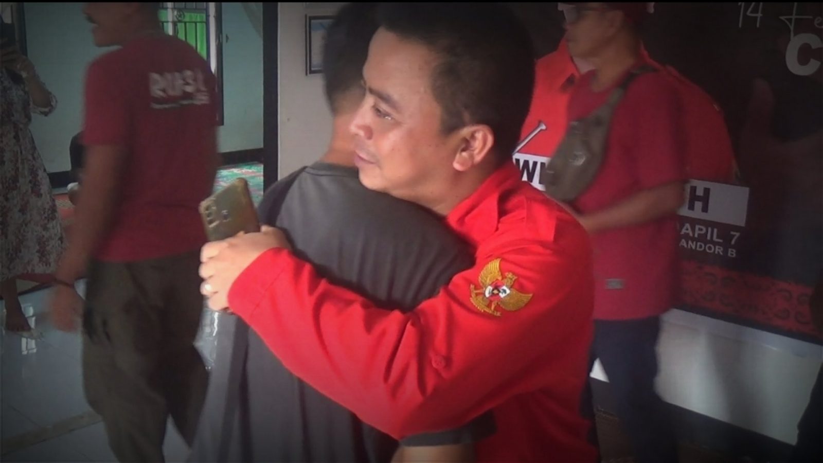 Satu persatu anggota tim pemenangan memberikan pelukan, kepada politisi PDI Perjuangan itu.