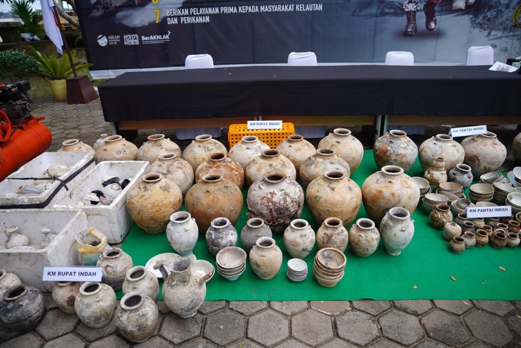 Pada saat dilakukan pemeriksaan oleh petugas, ditemukan sejumlah 1.218 keping barang muatan kapal tenggelam (BMKT) yang terdiri dari guci besar, guci sedang, guci kecil, piring, mangkok dan koin kuno pada ketiga kapal tersebut.