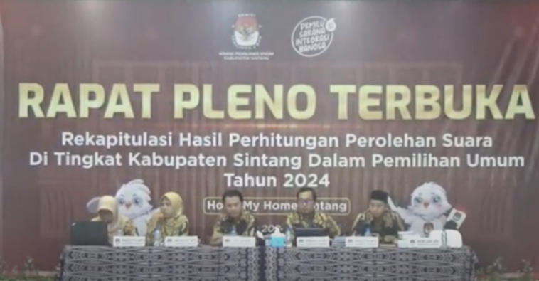 Komisi Pemilihan Umum (KPU) Kabupaten Sintang telah menetapkan rekapitulasi hasil perhitungan perolehan suara di tingkat Kabupaten Sintang dalam Pemilihan Umum Dewan Perwakilan Rakyat Daerah (DPRD) Kabupaten Sintang, dengan Nomor 1229 Tahun 2024, di Sintang, Kalimantan Barat, Senin (04/03/2024).