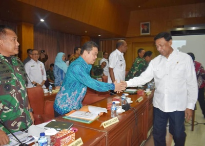 Rapat dipimpin Menteri Koordinator Politik Hukum dan Keamanan (Menkopolhukam) Wiranto bersama Menteri Lingkungan Hidup dan Kehutanan, Siti Nurbaya Bakar di Ruang Rapat Nakula Gd A Lt VI Kemenkopolhukam Jakarta.