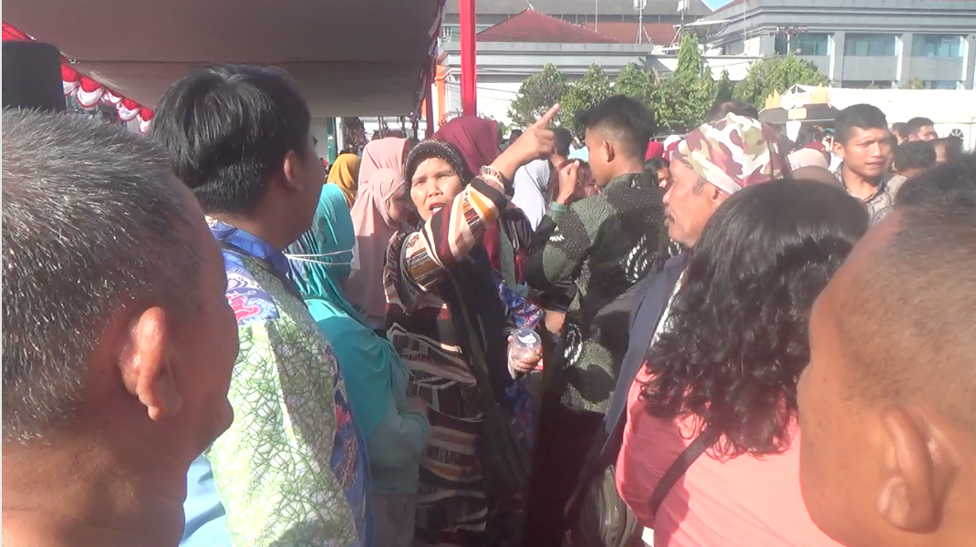 PONTIANAK, RUAI.TV – Sejumlah warga kecewa dan menyampaikan protes, kepada petugas yang melaksanakan gerakan pangan murah, di halaman Pontianak Covention Center (PCC), Jumat (23/02/2024) pagi. Sebab, meski menunggu sejak pukul enam, namun mereka tidak kebagian kupon belanja.