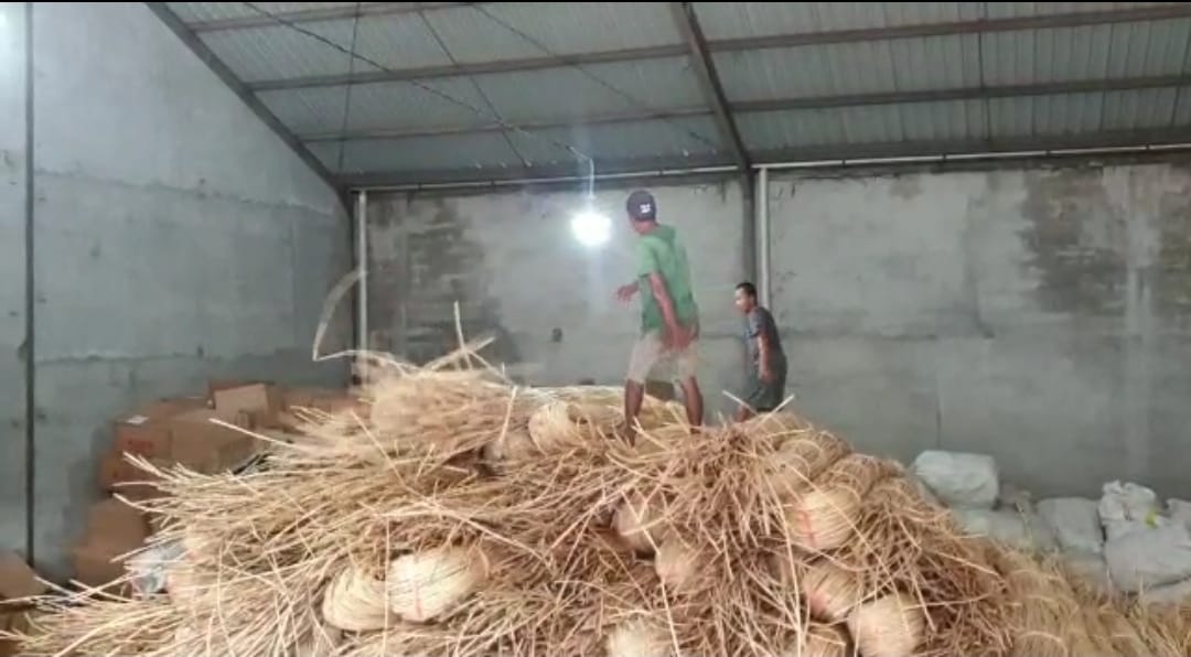 Untuk mengelabui petugas, 100 ton rotan diikat dan ditutup menggunakan terpal.