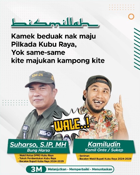 Sedangkan Bakal Calon Wakil Suharso, Sukep atau nama tenar komediannya Kamilonte juga putra asli Kubu Raya, berasal dari Arang Limbung, Kamil telah populer di semua kalangan.