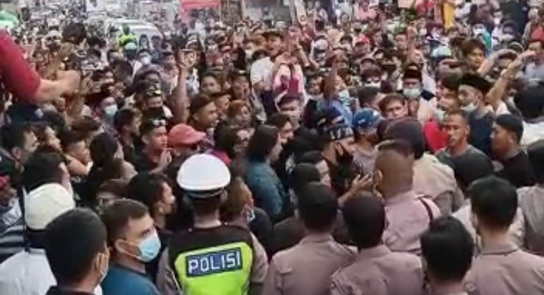 Massa melakukan perlawanan ketika petugas datang untuk membubarkan kerumunan itu. Meski Bupati Melawi juga ikut turun ke lapangan, massa tetap tidak mau meninggalkan lokasi.