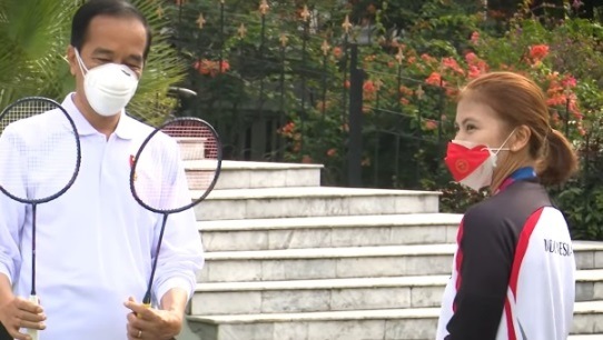 Melalui tayangan YouTube Sekretariat Presiden, warganet bisa menyaksikan atlit bermain bulutangkis bersama Presiden Jokowi. Atlit angkat besi, juga sempat memperlihatkan aksinya.