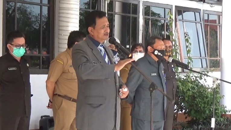 Nasir menggelar seremoni perpisahan dengan apartur kabupaten, Senin (15/02/2021) sore di selasar Kantor Bupati Kapuas Hulu.