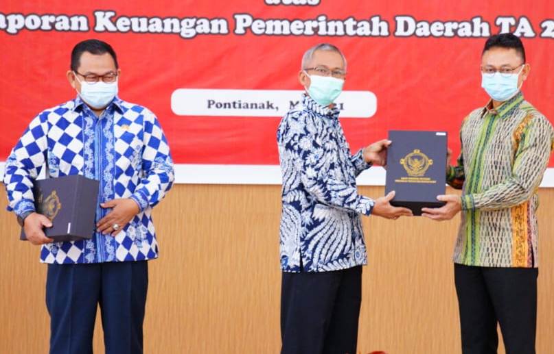 Wali Kota Pontianak, Edi Rusdi Kamtono, menerima LHP LKPD untuk tahun anggaran 2020 di Aula Kantor Badan Pemeriksa Keuangan (BPK) Perwakilan Provinsi Kalimantan Barat, Jumat (07/05/2021).