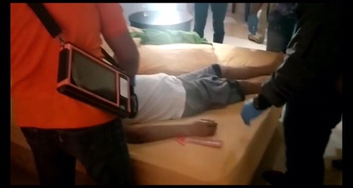 Ketika ditemukan, mayat dalam kondisi terlentang diatas tempat tidur. Diatas Meja Polisi juga menemukan suplemen berupa Tisu Basah untuk mencegah Ejakulasi dini.