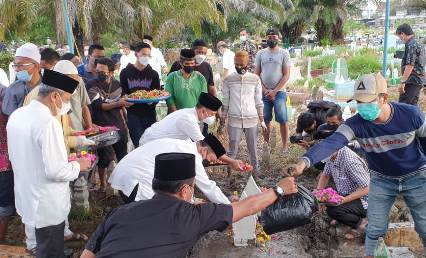 Wali Kota Pontianak, Edi Rusdi Kamtono, tampak mengikuti prosesi pemakaman almarhumah di Perkuburan Muslin Gang Tengah di Kecamatan Pontianak Kota.