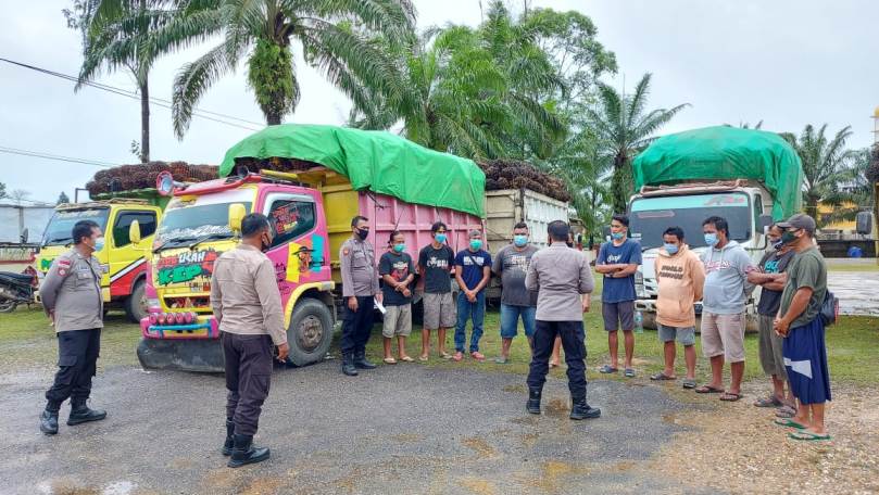 SANGGAU, RUAI.TV – Kepolisian Sektor Kembayan, Kabupaten Sanggau, menertibkan 10 unit mobil pengangkut buah kelapa sawit, Kamis (18/03/2021) karena tidak memasang jaring pengaman. Penertiban ini sebagai respon atas keluhan masyarakat Kembayan karena mobil-mobil ini kerap melintasi jalan utama di sana.