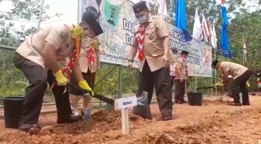 Kwartir Daerah Gerakan Pramuka Kalimantan Barat, melakukan penanaman ini di area Bumi Perkemahan Kompleks Sabang Merah, Sabtu (28/08/2021). Bupati Sanggau Paulos Hadi turut melakukan penanaman pohon di tempat ini.