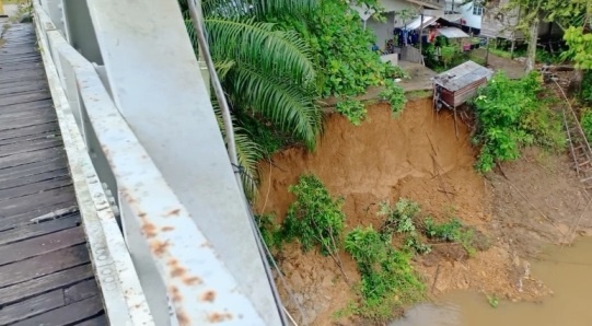 SEKADAU, RUAI.TV – Tebing tanah di bawah Jembatan Gantung Penanjung Lama, Desa Mungguk, Kecamatan Sekadau Hilir, longsor pada Kamis (18/03/2021 pagi. Tidak ada korban jiwa dalam peristiwa ini.
