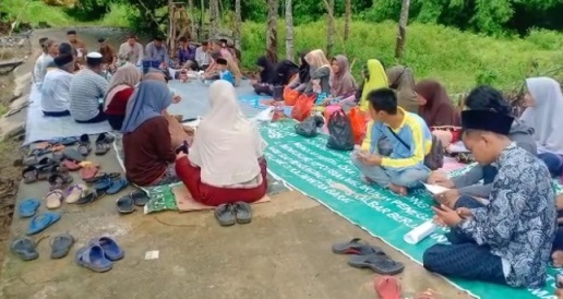 Di tempat itu, warga kampung menyelenggarakan dzikir tolak bala dan doa bersama. Seorang pemuka agama mengambil peran sebagai pemimpin kegiatan.