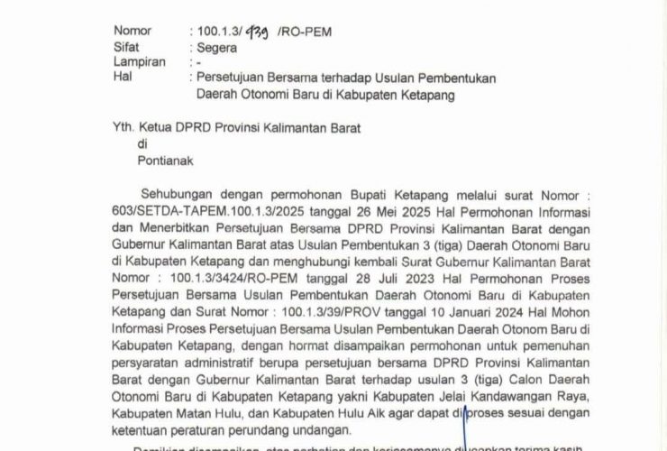 PONTIANAK, RUAI.TV – DPRD Provinsi Kalimantan Barat menggelar rapat paripurna pada Rabu (17/9/2025) dan menyetujui usulan pembentukan tiga Daerah Otonomi Baru (DOB) di Kabupaten Ketapang. Keputusan itu sekaligus menandai penandatanganan persetujuan bersama antara DPRD dan Gubernur Kalbar. Tiga DOB yang diusulkan ...