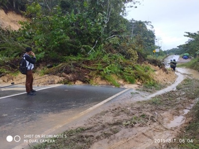 MELAWI – ini adalah kondisi ruas jalan provinsi penghubung kabupaten Melawi-kabupaten Sintang yang tertimbun tanah longsor Bukit Matok, yang terjadi 1 Maret 2019, dini hari, sekitar pukul 02.00 WIB. Longsor ini diduga terjadi akibat di wilayah tersebut diguyur hujan lebat, ...