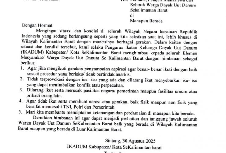 SINTANG, RUAI.TV – Ikatan Keluarga Dayak Uut Danum (IKADUM) Kabupaten/Kota se-Kalimantan Barat mengeluarkan himbauan bersama bagi seluruh warga Dayak Uut Danum di manapun berada. Himbauan ini muncul menyikapi situasi sosial politik yang dinilai cukup dinamis di Indonesia, khususnya di Kalimantan ...
