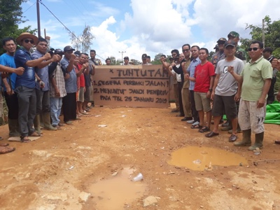 SINTANG – Warga Desa Simba Raya, kecamatan Binjai Hulu, kabupaten Sintang, menggelar aksi pagar jalan, Selasa, 12 Februari 2019. Pemagaran ini dilakukan warga sebagai ungkapan kekesalan terhadap janji Gubernur Kalbar, Sutarmidji, akan memperbaiki kerusakan jalan di daerah tersebut saat kunjungannya ...