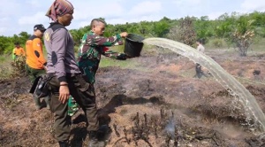 BENGKAYANG – Aparat gabungan dari TNI, Polri dan Manggala Agni bersinergi memadamkan kebakaran lahan diduga milik perusahaan perkebunan kelapa sawit PT.MAGP, di Desa Mekar Baru, Kecamatan Monterado, Kabupaten Bengkayang, Kamis, 18 Juli 2019. Meski belum diketahui pasti penyabab kebakaran ini, ...