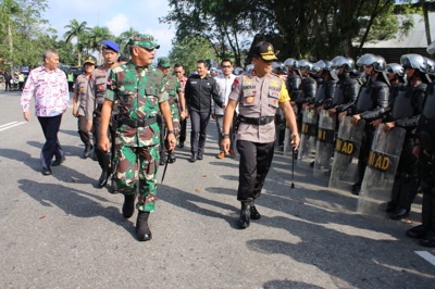 PONTIANAK – Panglima Komando Daerah Militer XII/Tanjungpura, Mayor Jenderal TNI Achmad Supriyadi dan Kepala Kepolisian Kalimantan Barat, Inspektur Jenderal Polisi Didi Haryono memimpin Apel Gelar Pasukan dalam rangka pengamanan menghadapi Pemilu Tahun 2019. Apel ini juga dilaksanakan serentak di seluruh ...
