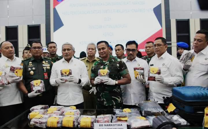 KUBU RAYA, RUAI.TV – Pangdam XII/Tanjungpura, Mayjen TNI Iwan Setiawan, menyerahkan langsung 5 (lima) orang pelaku dan barang bukti Sabu seberat kurang lebih 21,2 Kilogram ke Kepala BNN RI, Komjen Pol Martinus Hukom, di Makodam XII/Tpr, Senin 03 Juni 2024. ...