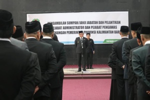 PONTIANAK – Gubernur Kalimantan Barat, Sutarmidji kembali melantik dan pengambilan sumpah/ janji pelantikan pejabat administrasi dan pejabat pengawas di lingkungan Pemerintah Provinsi Kalbar, di Balai Petitih Kantor Gubernur Kalbar, Senin (3/2/2020) pagi. Dalam sambutannya, Gubernur Kalimantan Barat, Sutarmidji mengungapkan pelantikan ...