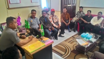 LANDAK – Ketua Dewan Adat Dayak (DAD) Kecamatan Mandor, Agus Guletek, bersama berberapa pengurus Adat, Kepala Desa dan Perangkat Desa Manggang, mendatangi Polsek Mandor untuk berkoordinasi tentang masalah yang ditangani oleh DAD Kecamatan Mandor, Kabupaten Landak, Selasa siang, (23/10/2018). Kapolsek ...