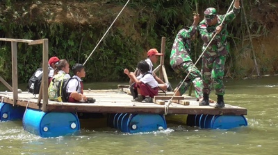 KAPUAS HULU – Murid SD Negeri 04 Bakul, Dusun Bakul, Desa Labian Irang, Kecamatan Batang Lupar, Kabupaten Kapuas Hulu, kini sedikit bisa bergembira. Untuk pergi ke sekolah, mereka tidak lagi harus berenang menyeberangi sungai, sekarang mereka bisa menyeberang dengan menggunakan ...
