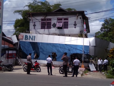 KAPUAS HULU – Warga Putussibau, Kabupaten Kapuas Hulu dihebohkan dengan peristiwa ambruknya Fasad (bagian depan) Kantor Cabang Pembantu BNI Putussibau, di jalan Komyos Sudarso Putussibau, sekitar pukul 10.30 Wib Senin (11/2). Tidak ada korban jiwa dalam peristiwa ini, namun kerugian materil diperkirakan antara 50-100 juta rupiah.